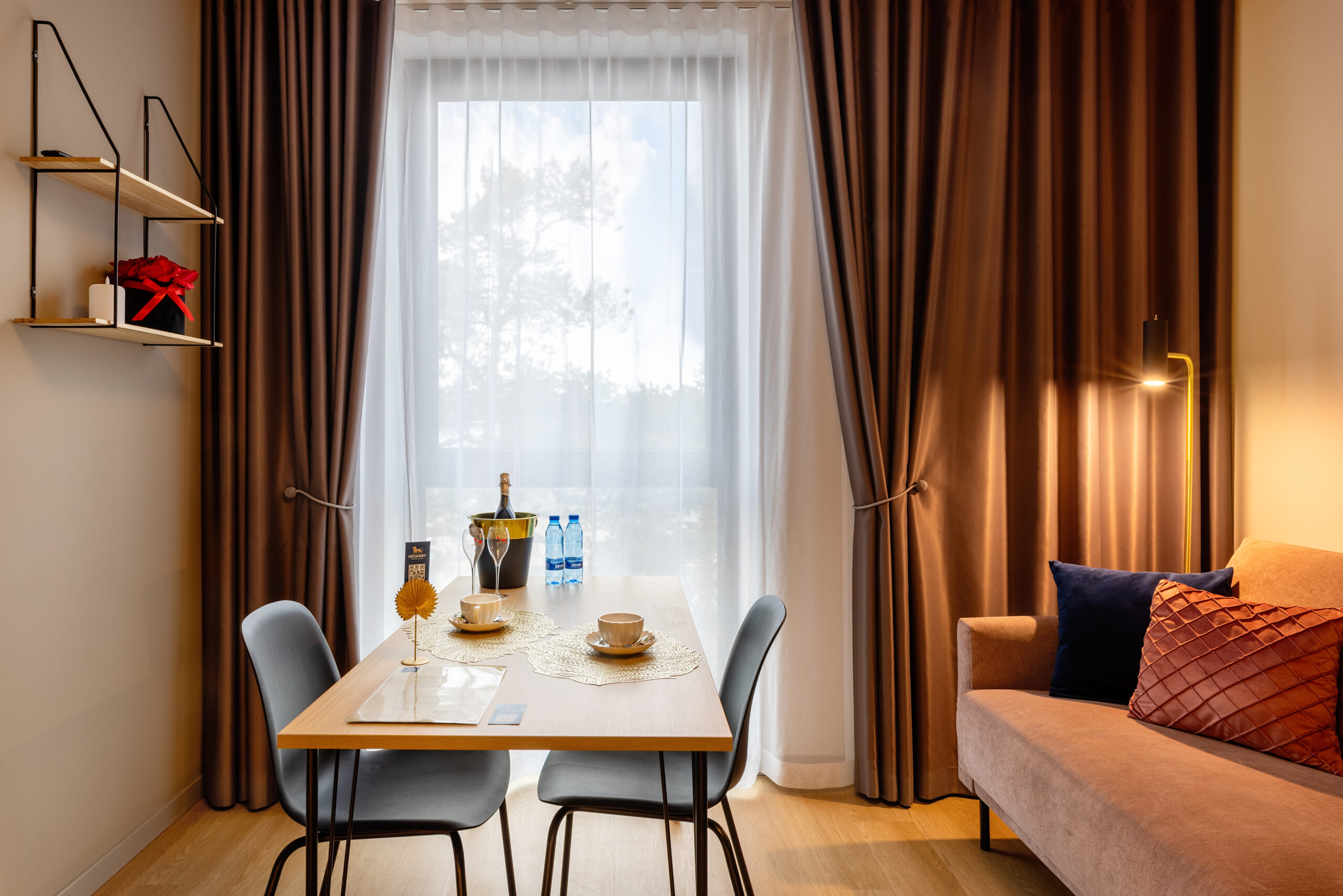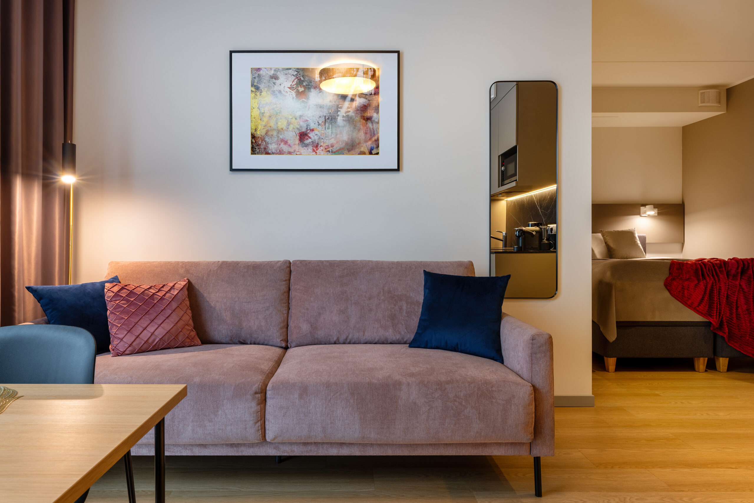 This spacious and fully furnished 26 m² suite has been created for guests who value space, modern elegance, and carefully considered comfort. Its thoughtfully curated interior, quality furnishings, and tasteful finishing touches create a warm and sophisticated atmosphere where every stay feels memorable.
