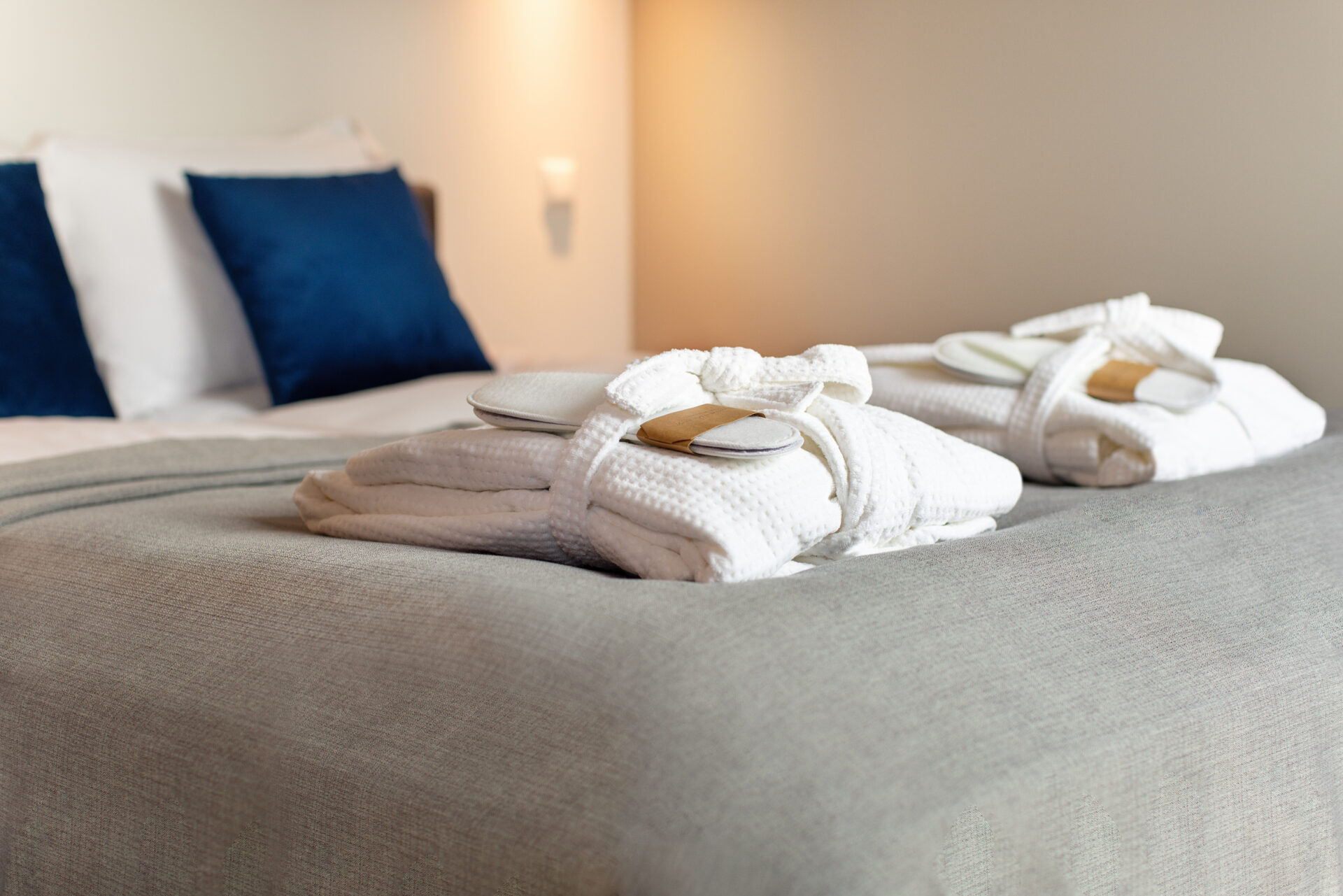 The Majestic King Suite is a spacious and fully furnished family suite, perfectly suited for couples as well as families. With two separate rooms connected by an interconnecting door and two private bathrooms, it offers enhanced comfort, privacy, and room to relax. The suite has been thoughtfully designed with practical details and is also suitable for guests using a wheelchair. Its open, functional layout, premium furnishings, and carefully selected amenities create a peaceful and inviting setting for a truly comfortable stay.